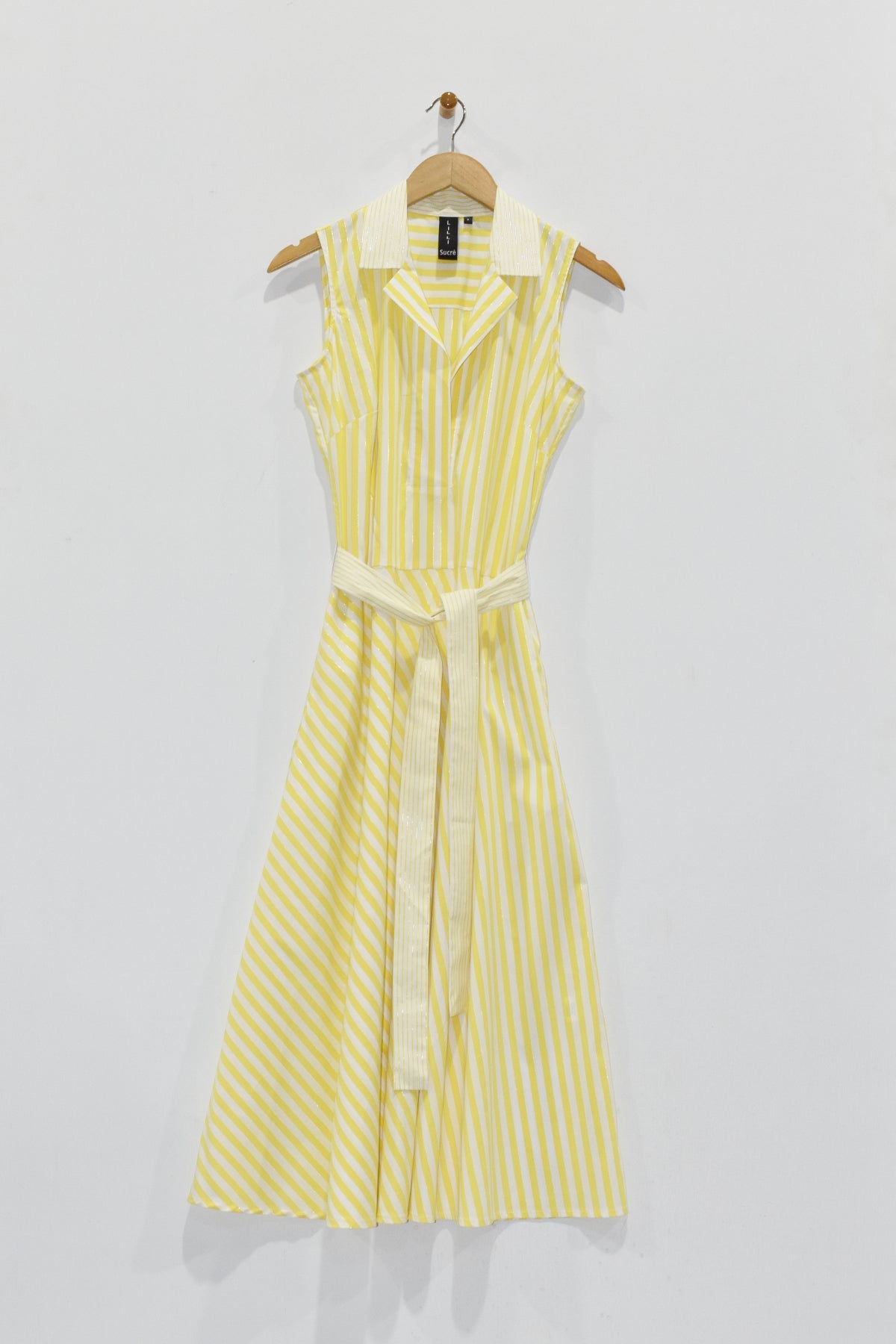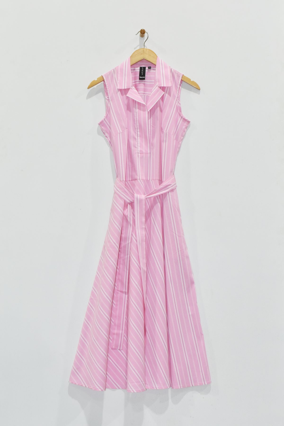 Stripes that pop and a silhouette that doesn't quit—this sleeveless shirtdress is your new go-to for effortless style. The diagonal contrast stripes add visual interest while the tea-length cut keeps things polished and versatile. Rock it solo or cinch it with the optional belt for a more defined waist. Practical pockets? Check. Timeless appeal? Double check. Whether you're dressing up or keeping it casual, this piece does the heavy lifting.