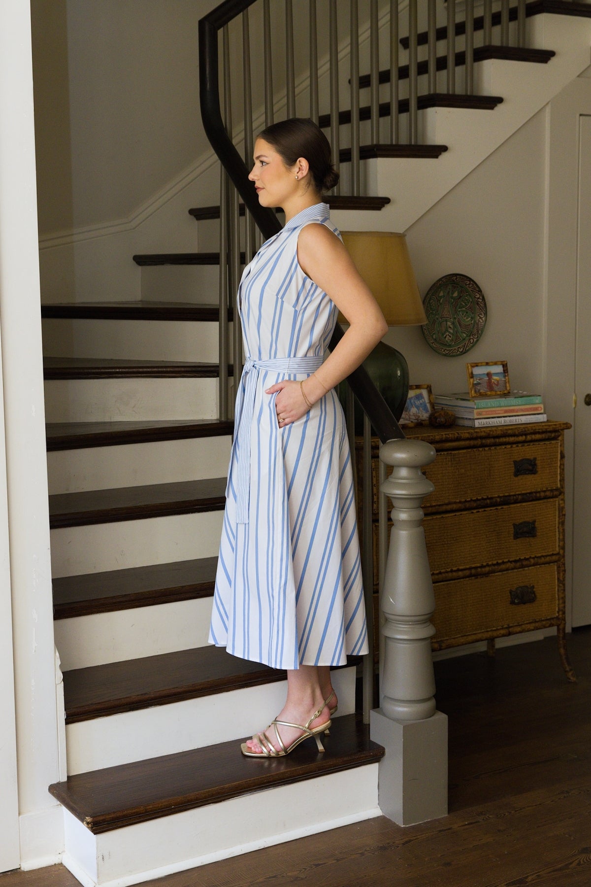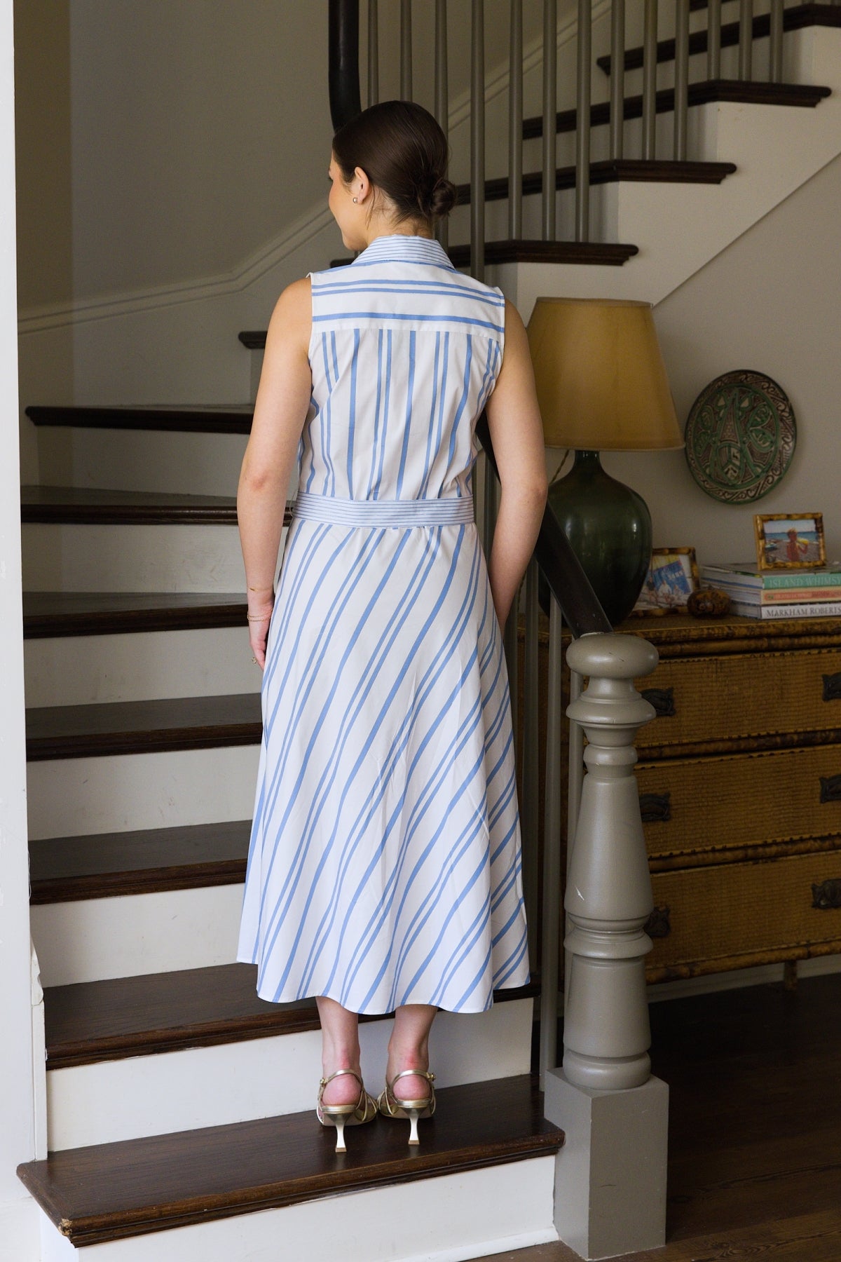 47" Contrast Stripe Sleeveless Shirtdress