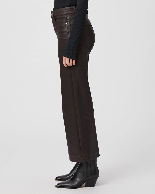 This super flattering style has a leather-like look, but doesn't sacrifice comfort. Cut from coated TRANSCEND denim in a rich coffee brown shade, this style is luxuriously soft with plenty of stretch and recovery to give it a flawless fit from morning to moonlight.