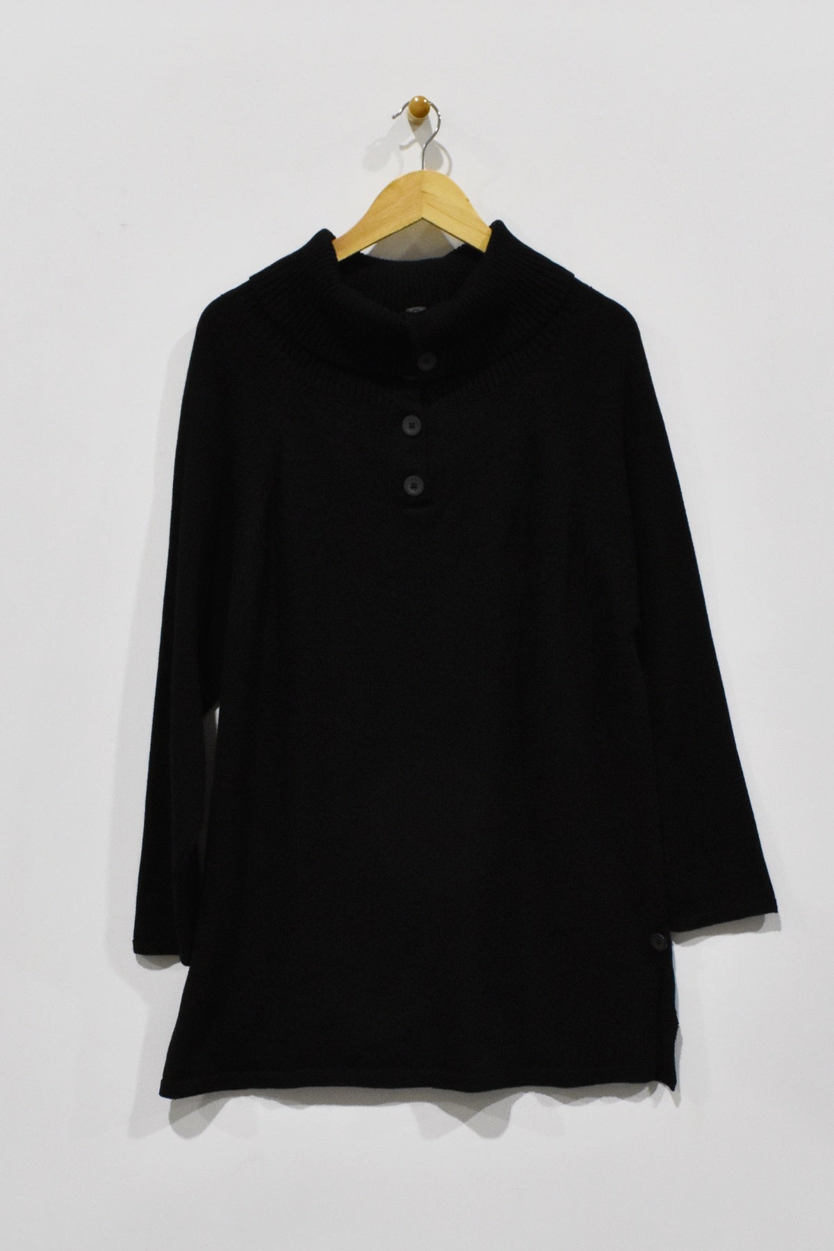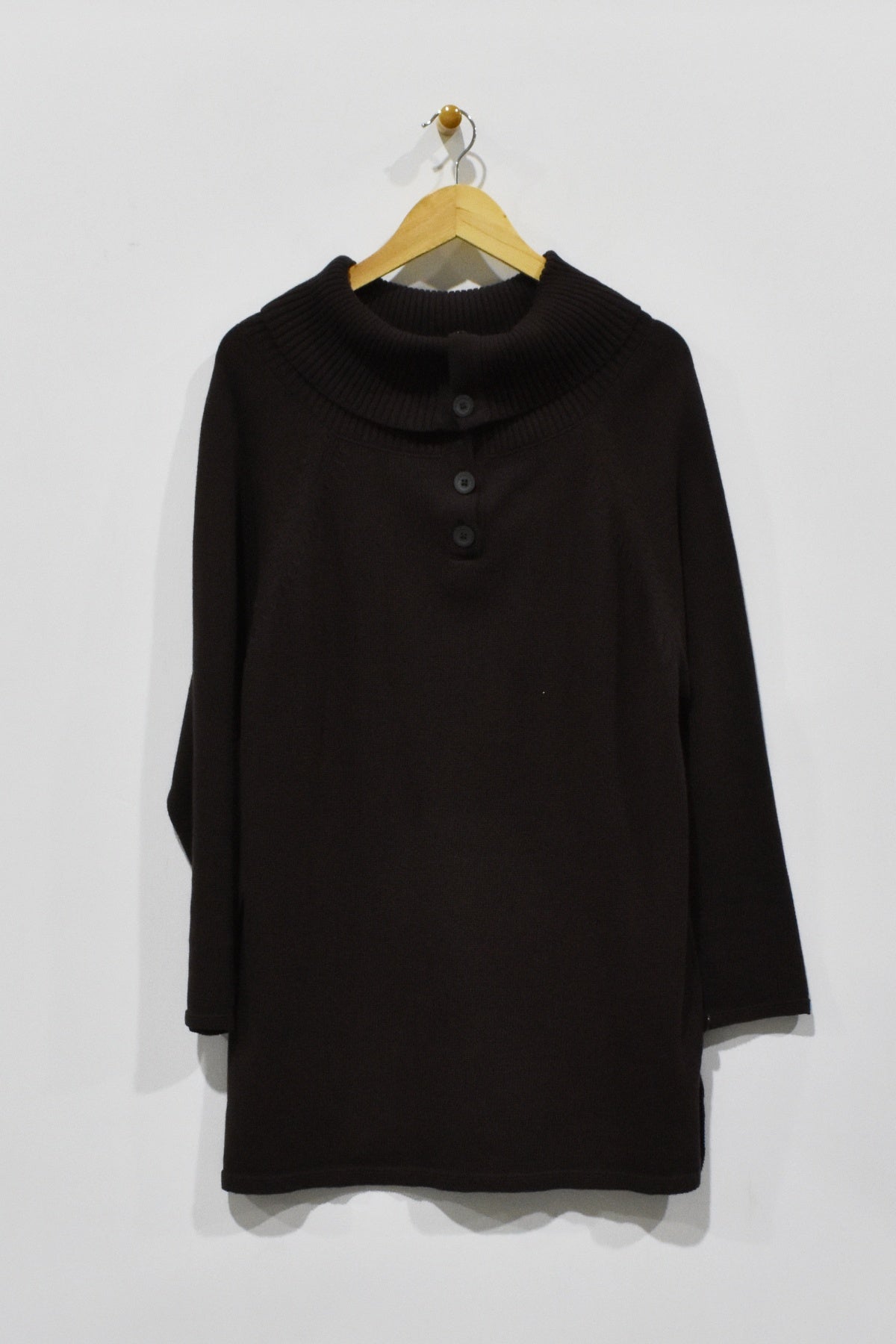 Experience ultimate comfort with the 32" Big Button Cowl Sweater. This oversized, cozy piece features a stylish button cowl neck and long sleeves, perfect for layering on chilly days. Its relaxed fit ensures warmth without sacrificing style, making it an essential addition to your wardrobe for effortless, all-day comfort.
