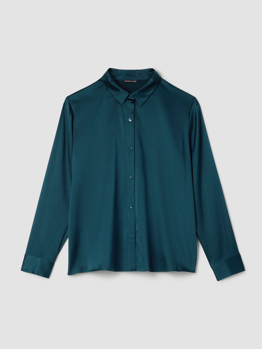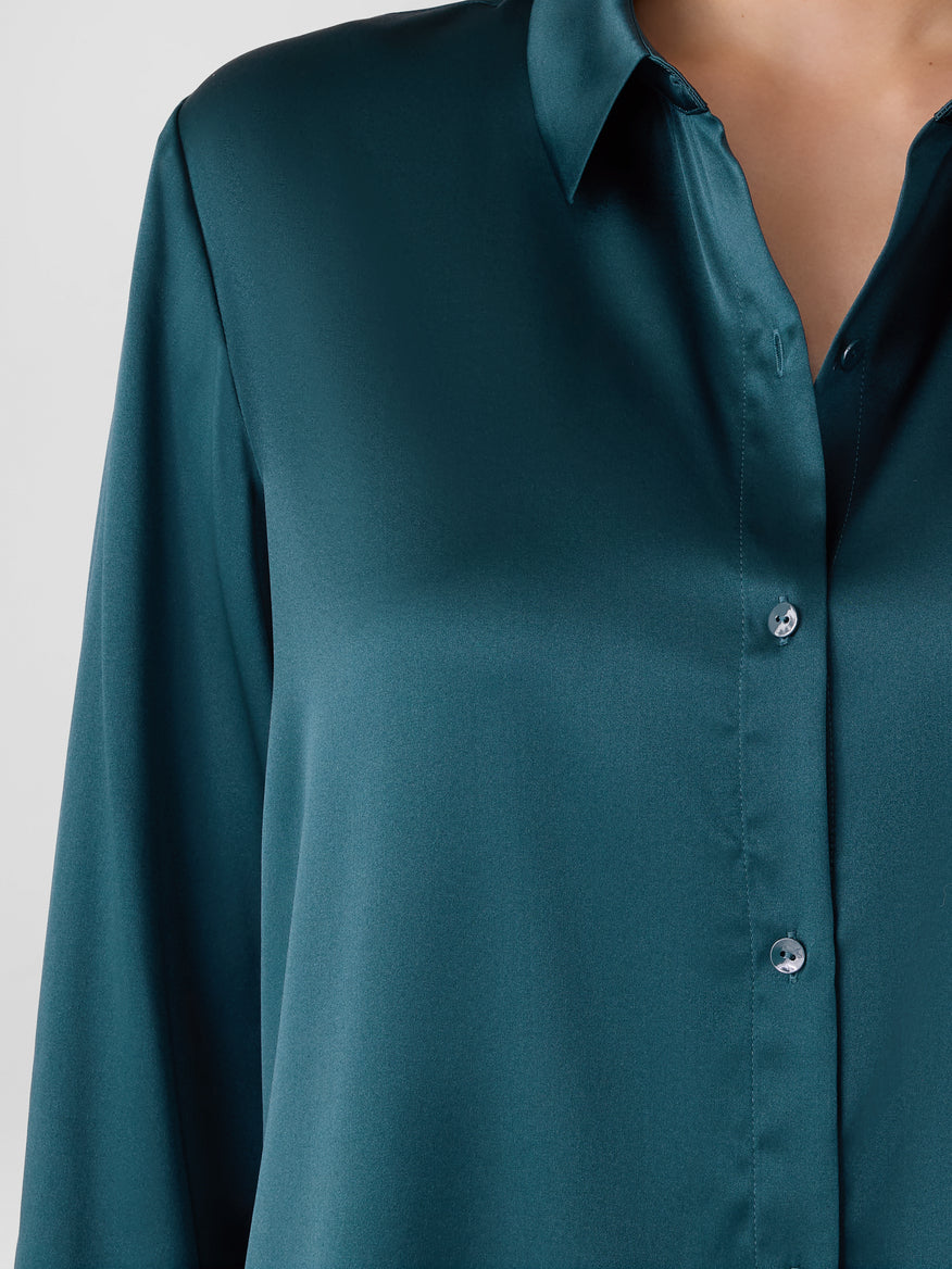 Classic—with a touch of shine. An elegant button-up shirt that goes straight into the wash, in our lustrous silk charmeuse. Made in a Fair Trade Certified™ factory.