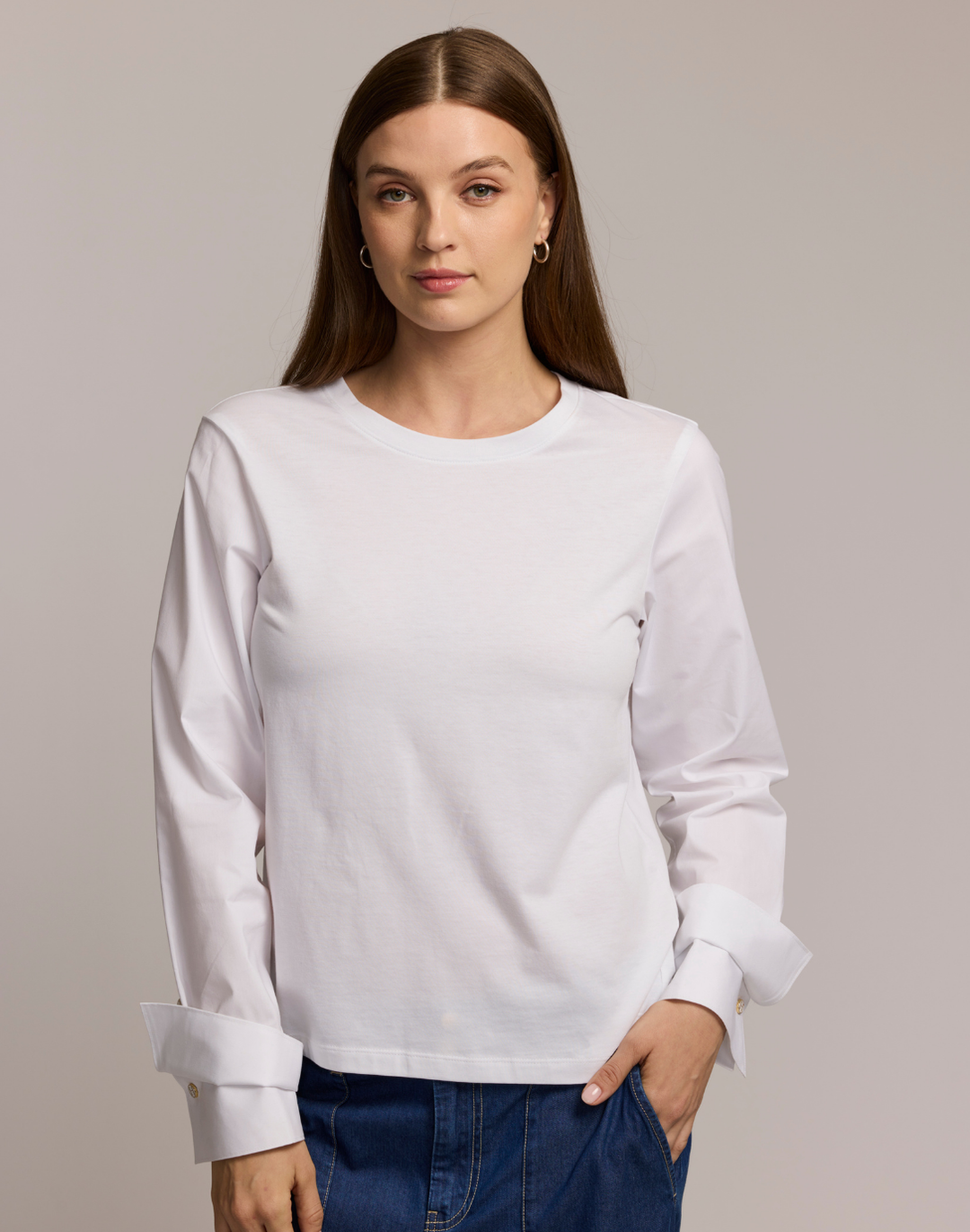 A refined blend of structure and stretch. Foundation Layers combine crisp woven detailing with soft knit comfort—made to layer effortlessly, yet elevated enough to wear on their own.
