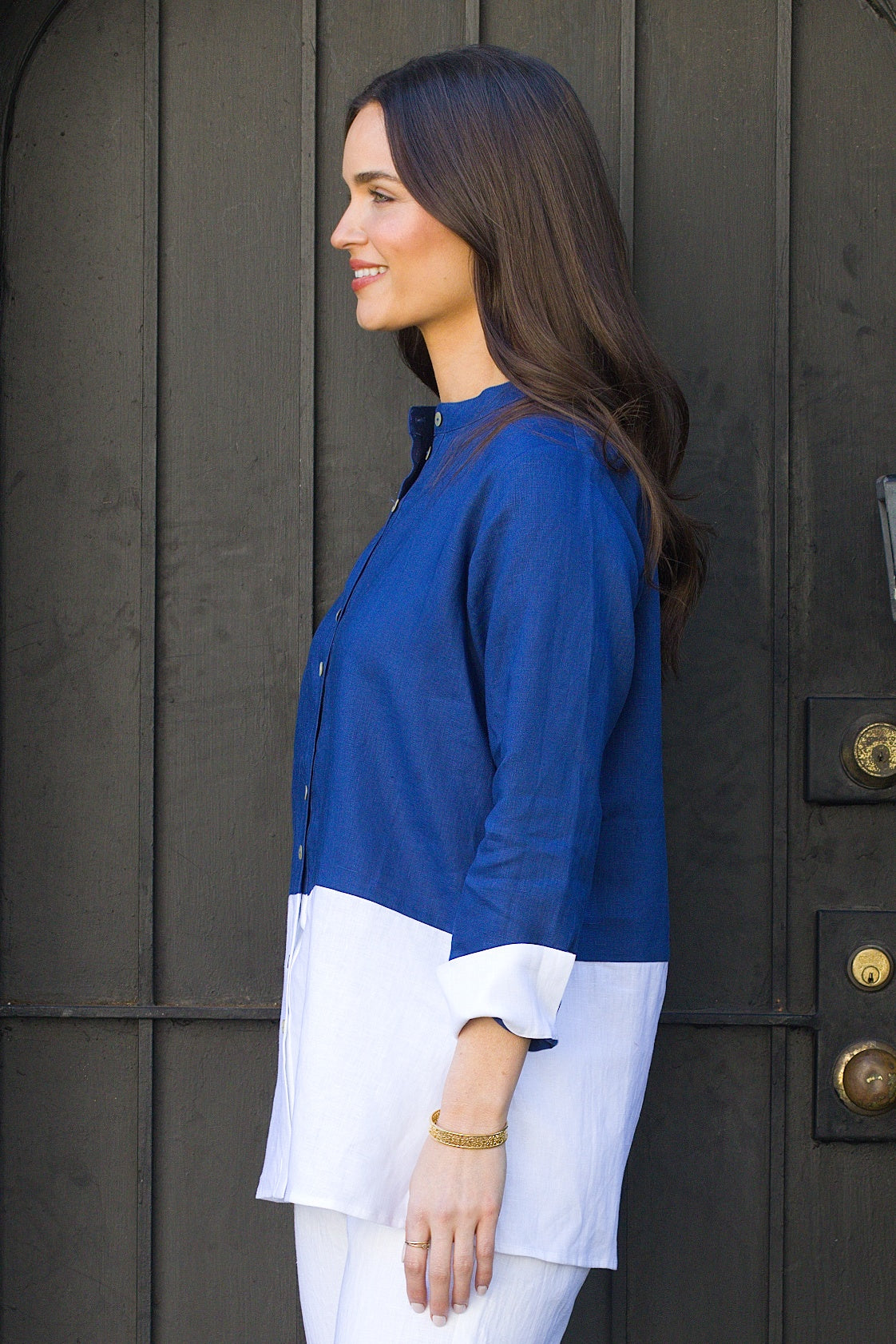 Elevate your wardrobe with this sophisticated 30" 2-Tone Mandarin Tunic, where timeless style meets everyday comfort. Crafted from 100% linen, this piece breathes beautifully in any season while maintaining its natural elegance. The striking color-block design adds visual interest and modern flair, while the long sleeves provide versatile coverage for layering or standalone wear. The mandarin collar brings an understated refinement that works seamlessly from casual outings to elevated occasions. Linen's inherent texture and durability ensure this tunic becomes a cherished staple you'll reach for again and again.