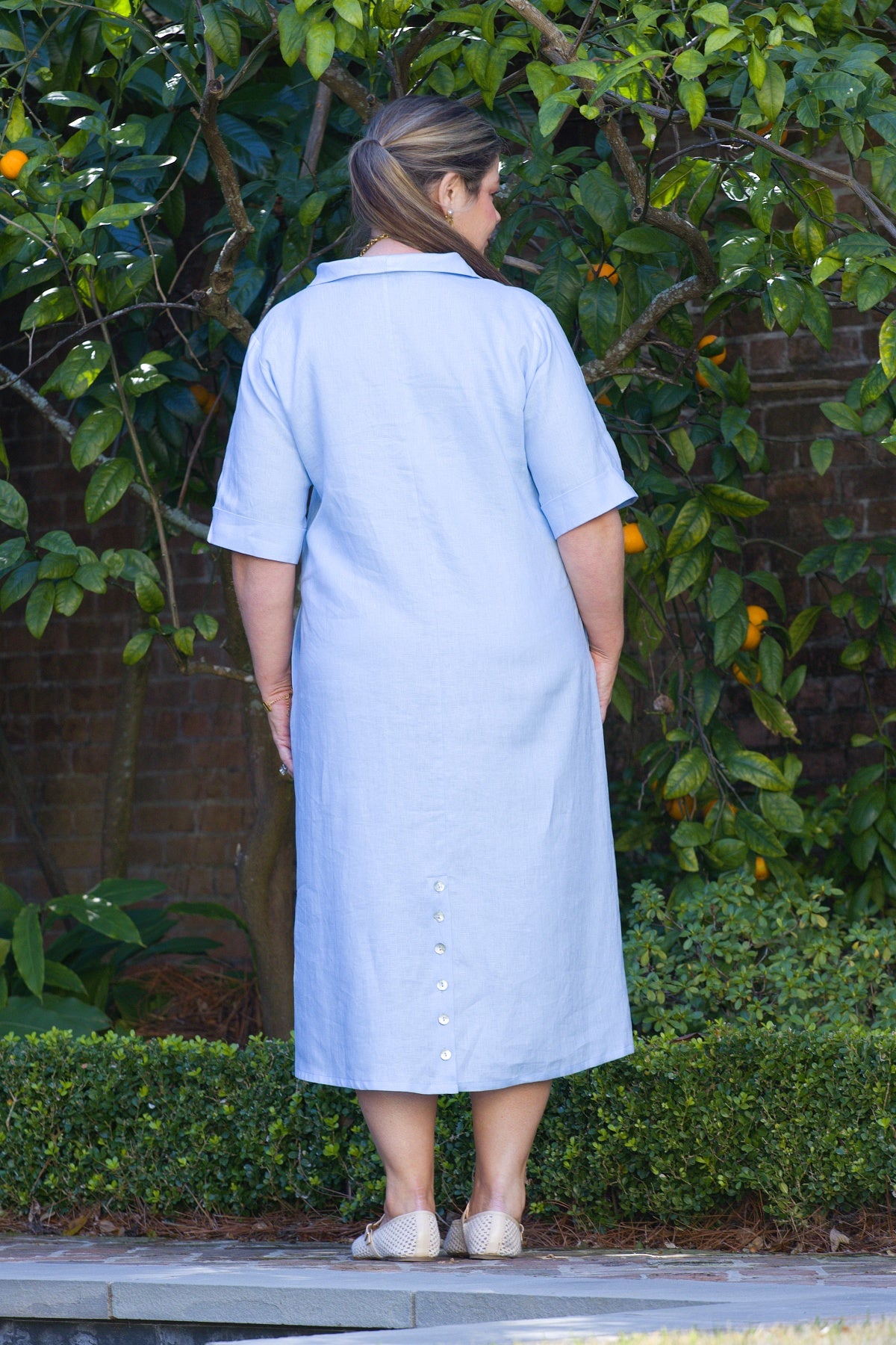 Discover effortless elegance with this 47" ¾ Sleeve Button-Down Collar Dress, designed for those who value both style and practicality. Constructed from 100% linen, this dress offers breathable comfort that adapts to your lifestyle throughout the day. The tea length hem strikes the perfect balance between sophistication and wearability, while the classic button-down collar adds timeless polish. Functional pockets provide convenient storage without compromising the dress's refined silhouette. Whether you're dressing up for brunch or down for weekend adventures, this versatile linen piece delivers understated luxury with every wear.