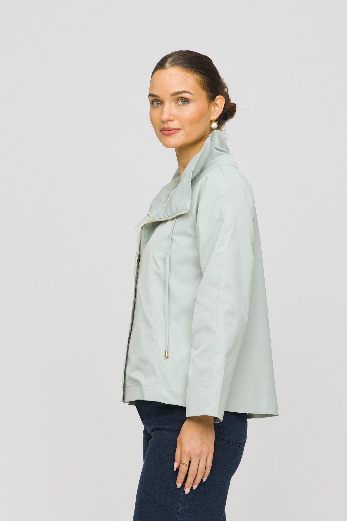 Stay stylish and protected with the 25" Aline Pull-String Jacket. Its water-resistant fabric keeps you dry in unexpected weather, while the gold zipper adds a touch of elegance. The versatile design lets you dress it up or down effortlessly, and the pull-string collar offers a customizable fit for added comfort. Perfect for any occasion, this jacket combines practicality with chic appeal.
