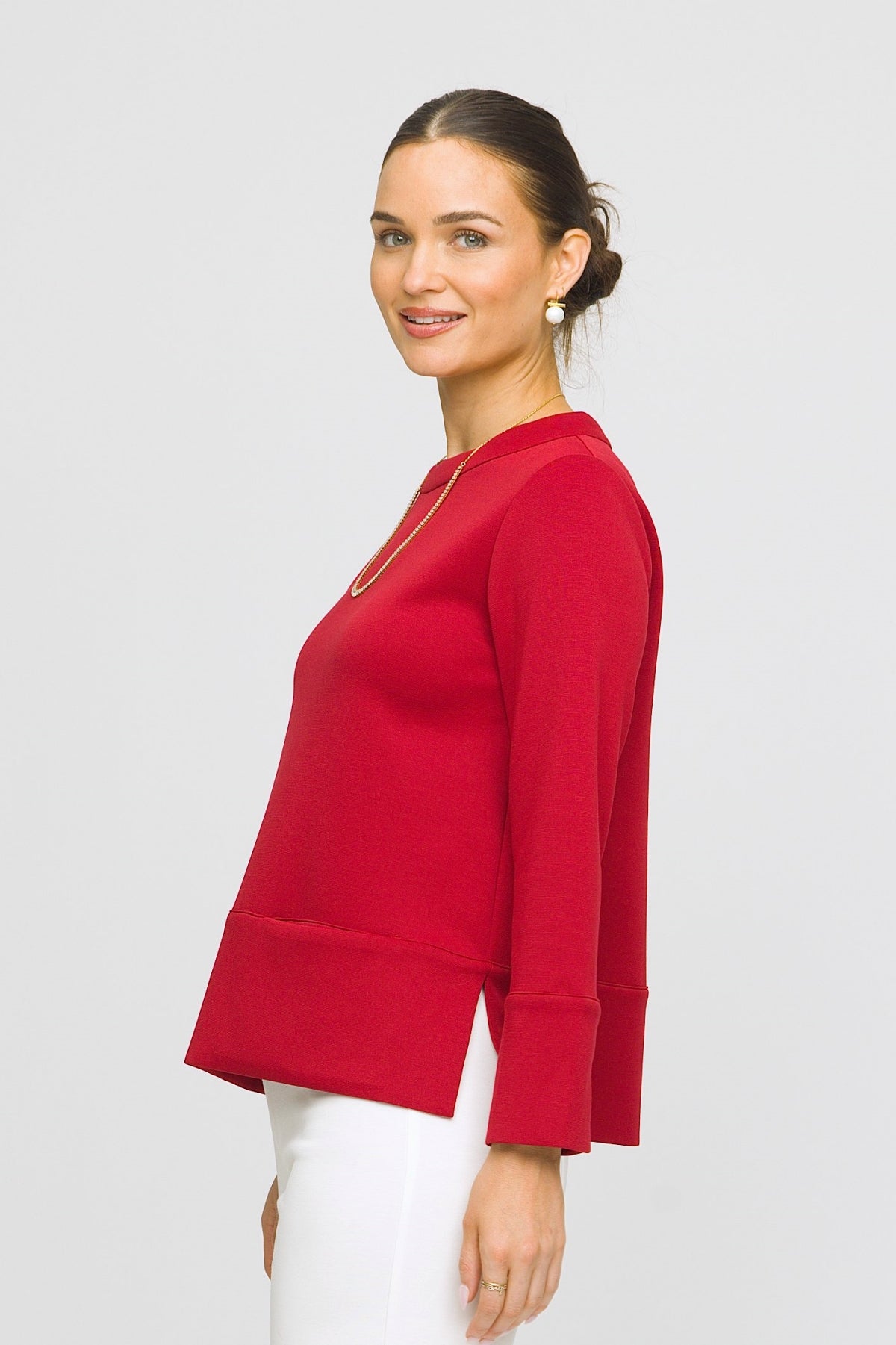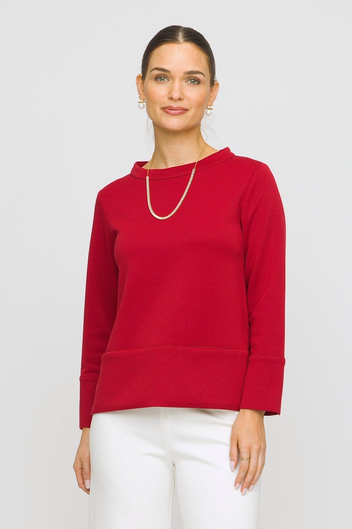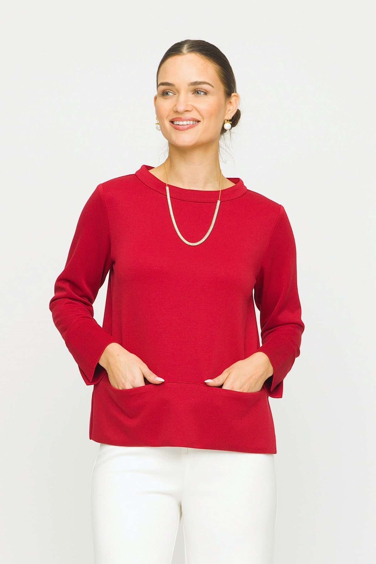 Experience sleek sophistication with the 26" High Neck Scuba Top, designed with a flattering bateau neck and long sleeves for a polished look. The invisible zipper at the neck ensures a smooth, seamless finish, while the convenient pockets add practicality without compromising style. Perfect for elevating your everyday wardrobe with a modern edge.