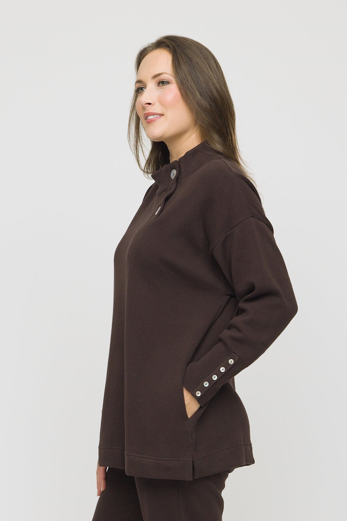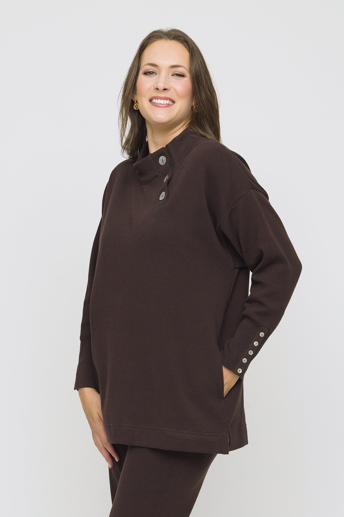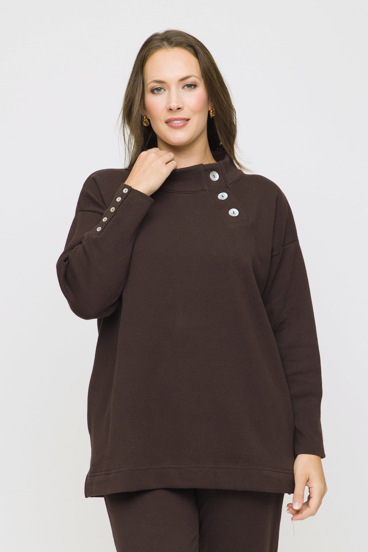 30" Asymmetrical Button Collar Sweater