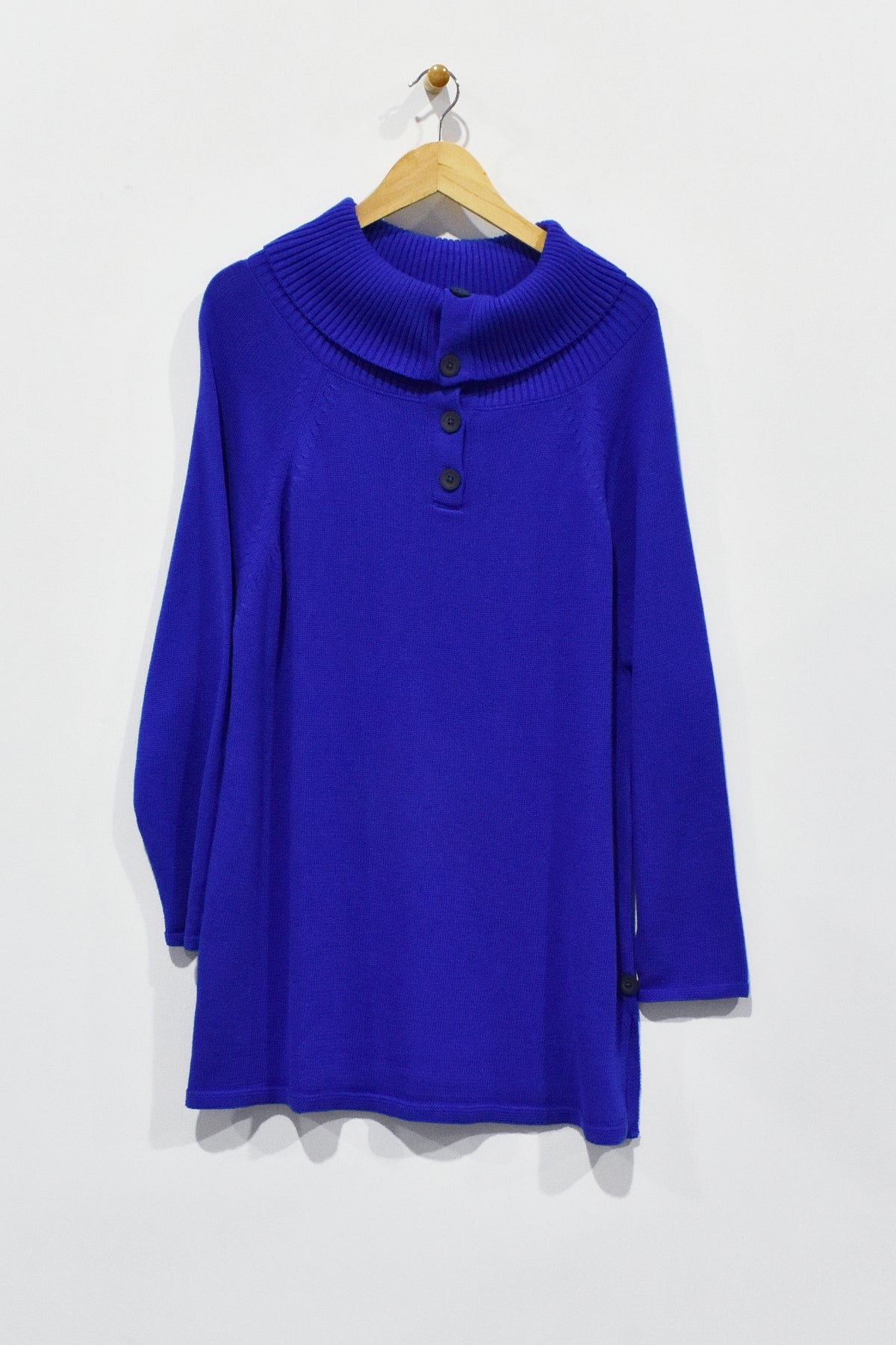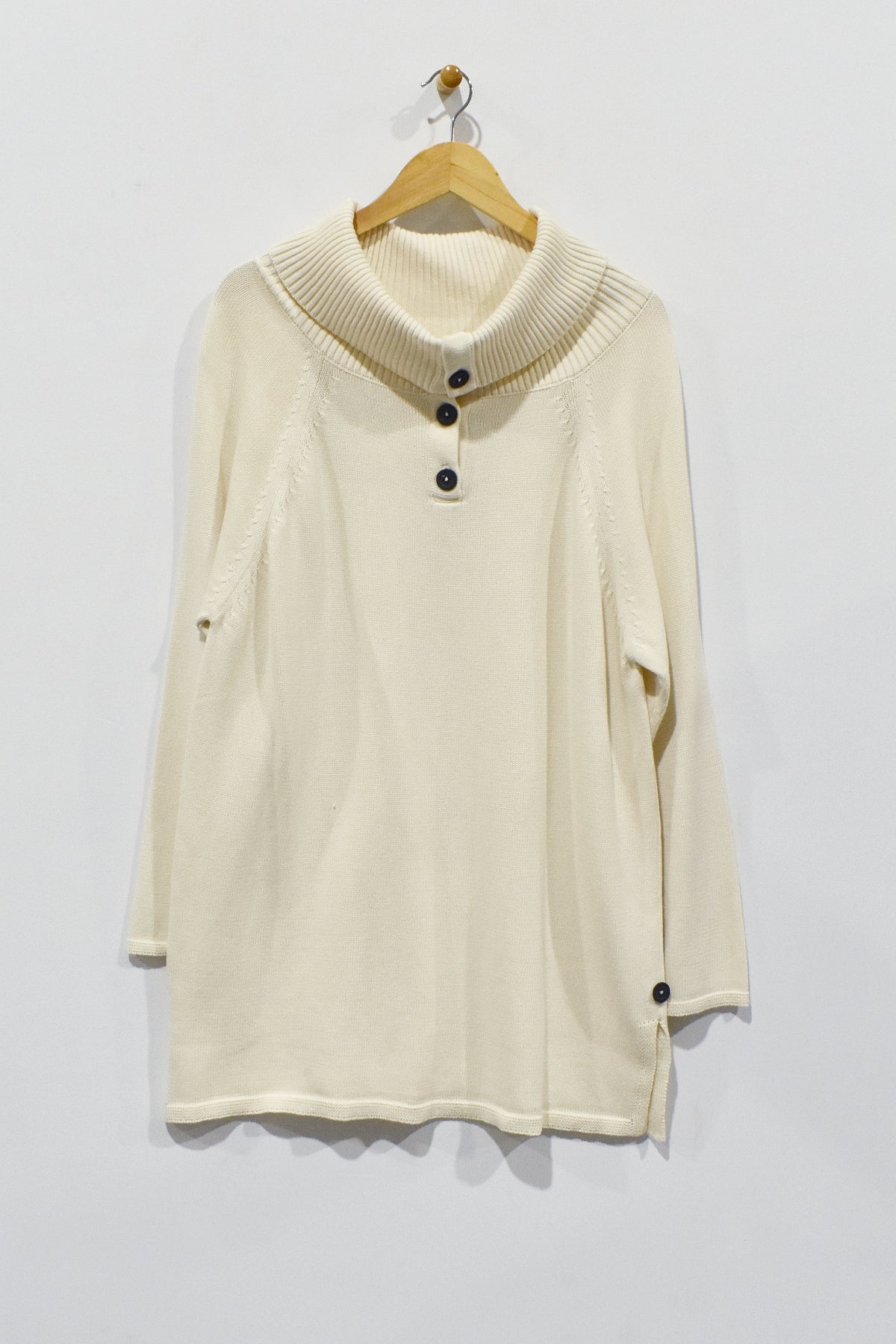 Experience ultimate comfort with the 32" Big Button Cowl Sweater. This oversized, cozy piece features a stylish button cowl neck and long sleeves, perfect for layering on chilly days. Its relaxed fit ensures warmth without sacrificing style, making it an essential addition to your wardrobe for effortless, all-day comfort.