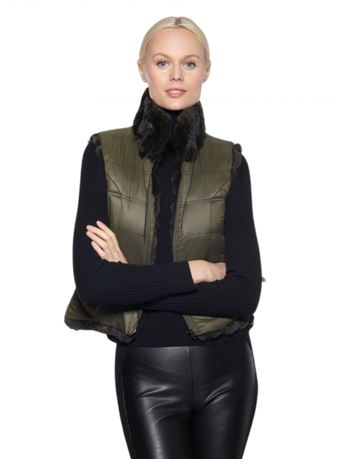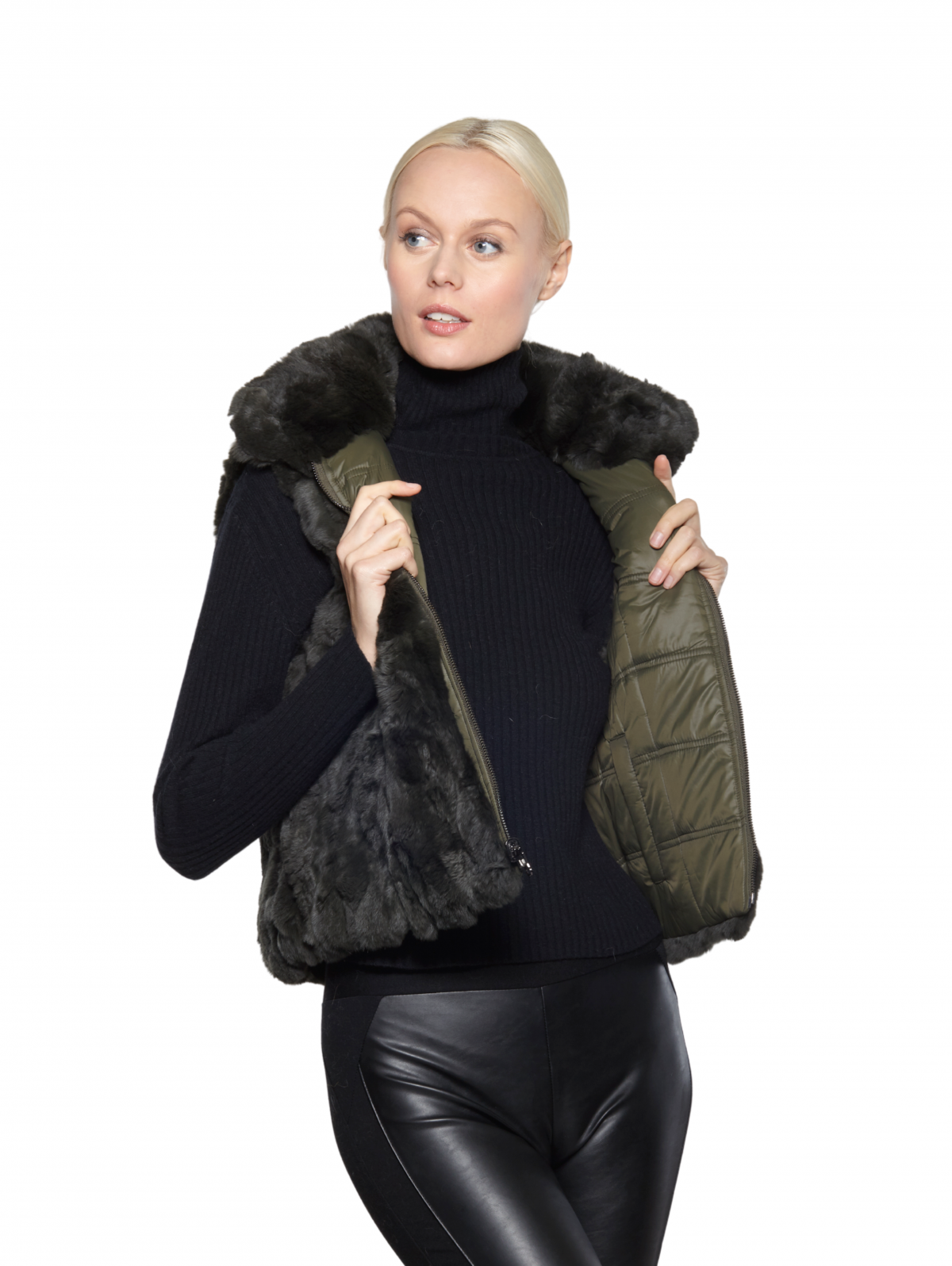 Elevate your wardrobe with this luxurious 26" Rex Rabbit Reversible Vest, crafted for versatility and sophistication. Featuring genuine rex rabbit fur on both sides, you'll enjoy two distinct looks in one stunning piece. The classic stand collar frames your face beautifully, while convenient side pockets keep essentials within reach. Smooth zipper closure ensures effortless styling. Perfect for layering over any outfit, this reversible vest transitions seamlessly from casual to elegant occasions, making it an investment piece that works harder in your closet.