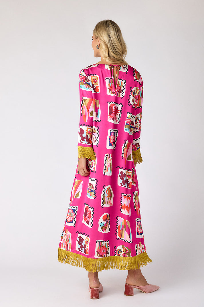 Turn heads, collect compliments, repeat. Named after our Drewry Street office, the Drewry Dress is a true showstopper. With its flattering A-line silhouette, ¾-length sleeves, and rounded neckline, this standout style is finished with playful fringe along the sleeves and hem for added flair.