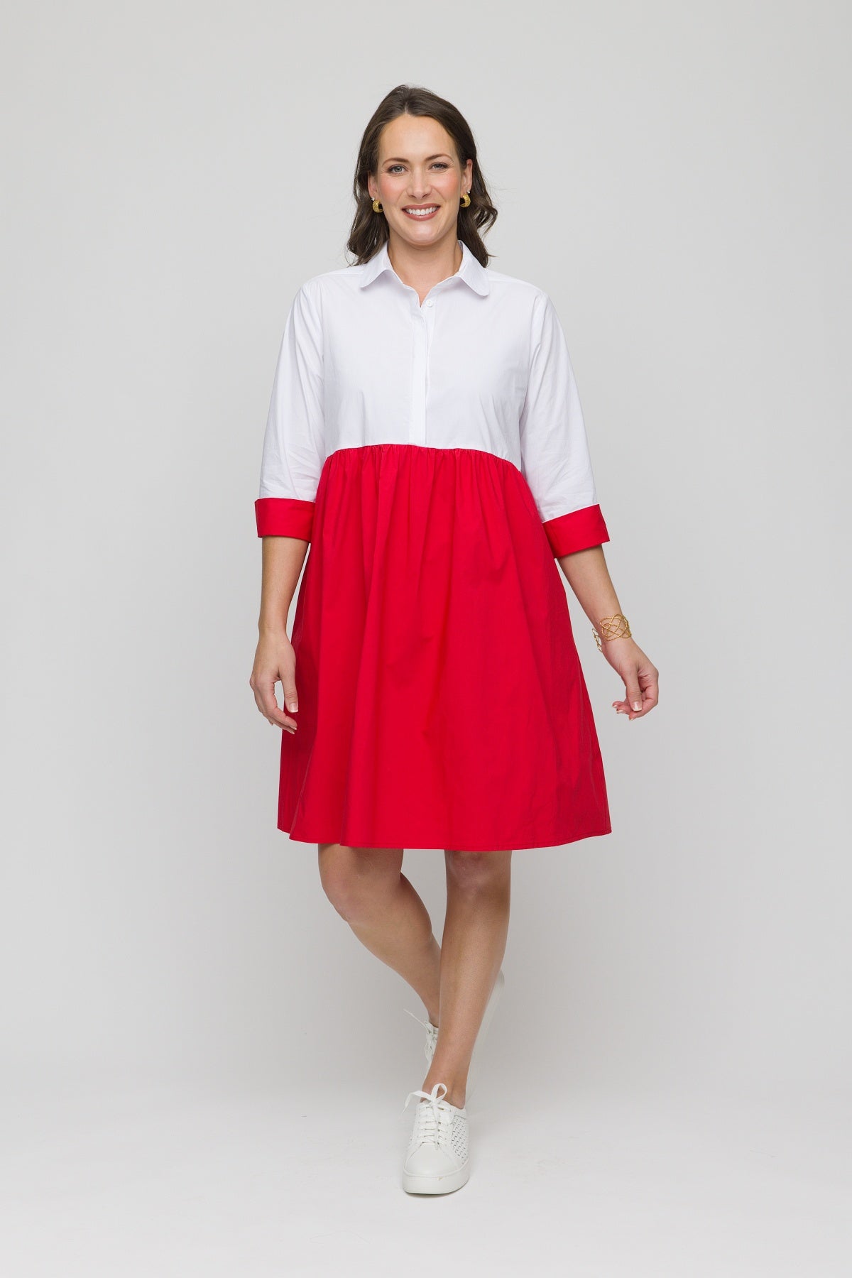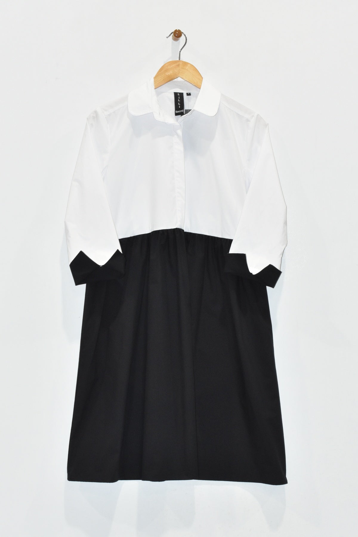 Elevate your everyday style with this charming shirtwaist dress featuring a classic Peter Pan collar and crisp 2-tone design. The three-quarter sleeves offer the perfect balance of coverage and breathability, while functional pockets keep your essentials close. At 38 inches, this versatile piece transitions seamlessly from casual outings to polished occasions. Whether you're channeling vintage vibes or modern sophistication, this dress delivers timeless appeal with a contemporary twist.
