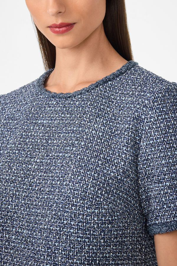 Sophisticated and feminine, this tweed dress is a fresh take on daytime suiting. This short-sleeved dress is finished with a crewneck and center back invisible zip. Made of novelty tweed from Portugal, this dress has a light and easy feel that is resort ready.