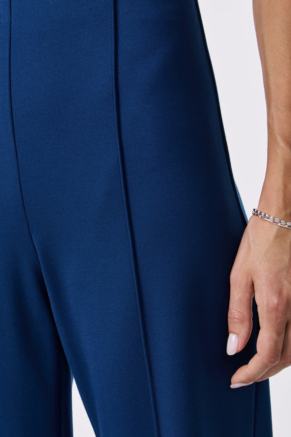 These sleek, cropped wide leg trousers take a comfy approach. Front seams give these pants a tailored look, while soft, stretchy ponte knit shapes to curves and moves with you. The pair is finished with a pull-on elastic waistband for ease of wear.