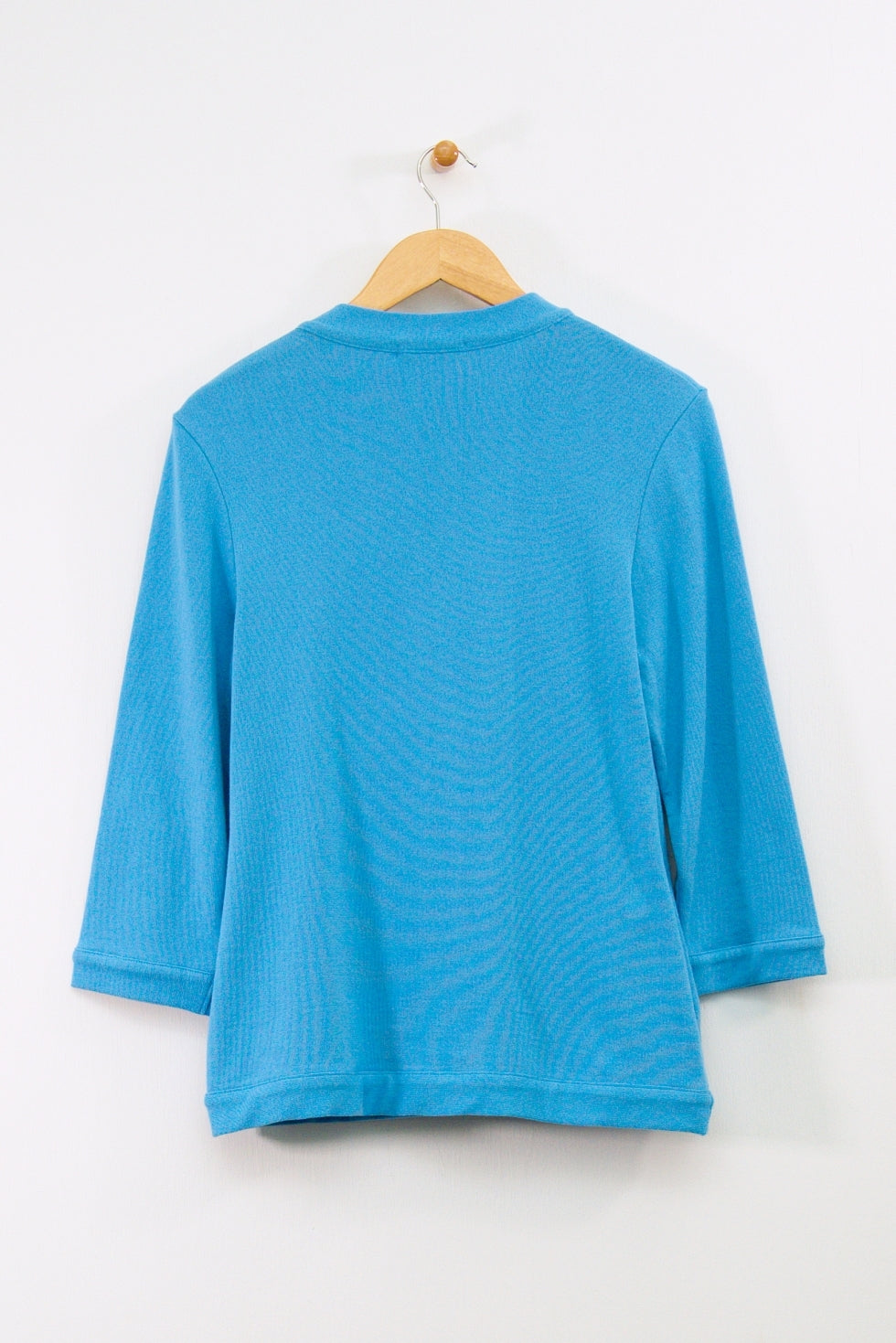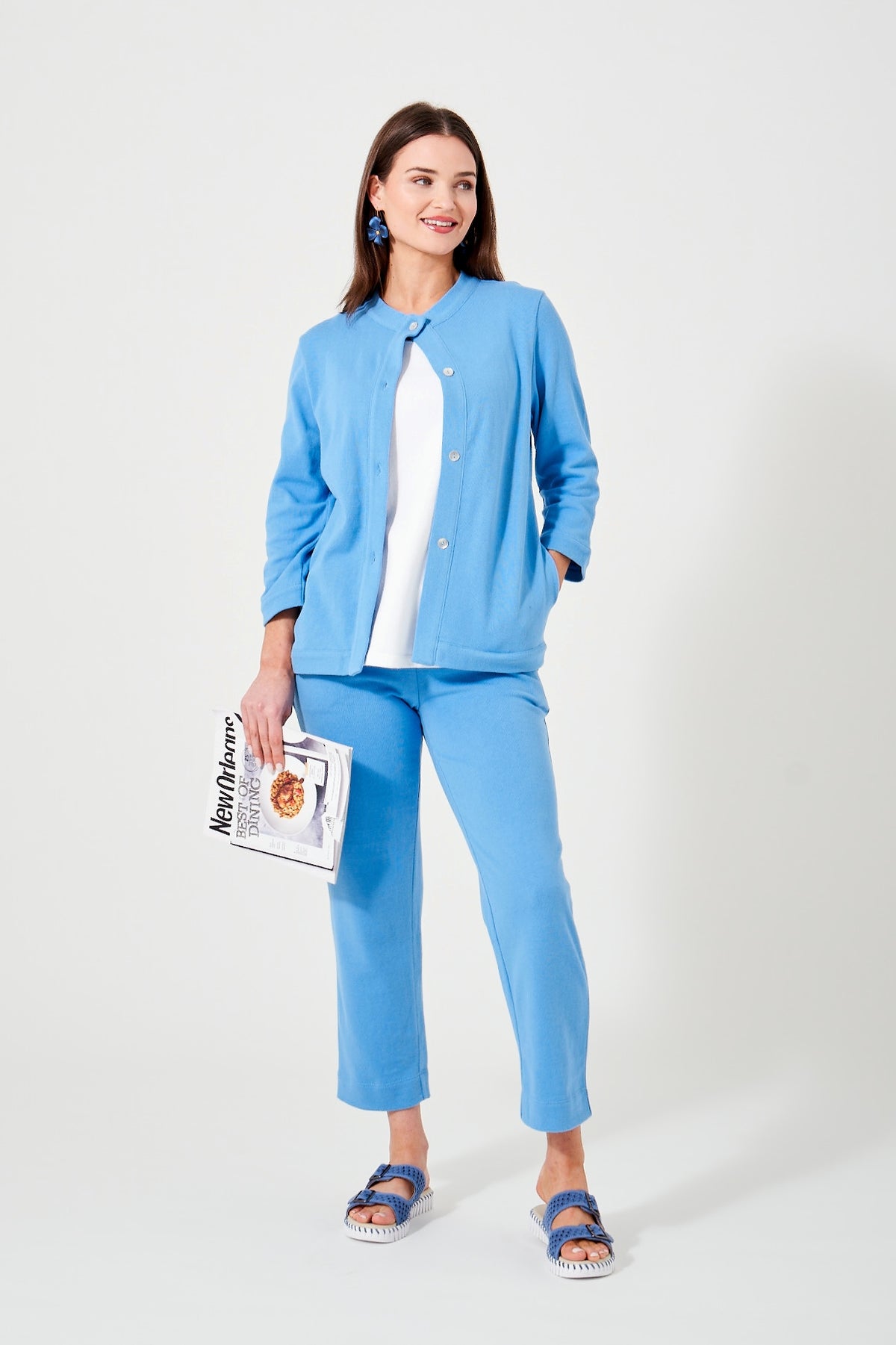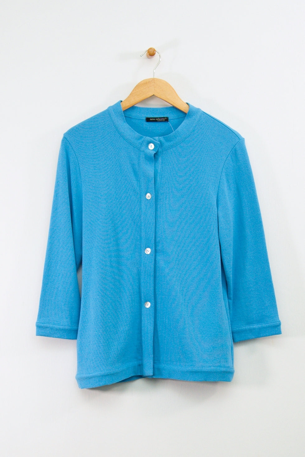 This 26" Cardigan Jacket with Pockets is perfect for everyday wear. Made from soft cotton, it features a classic crew neck and bracelet length sleeves. The shell buttons add a touch of style while the pockets offer convenience. Sustainably made in Peru, it's a must-have for any wardrobe.