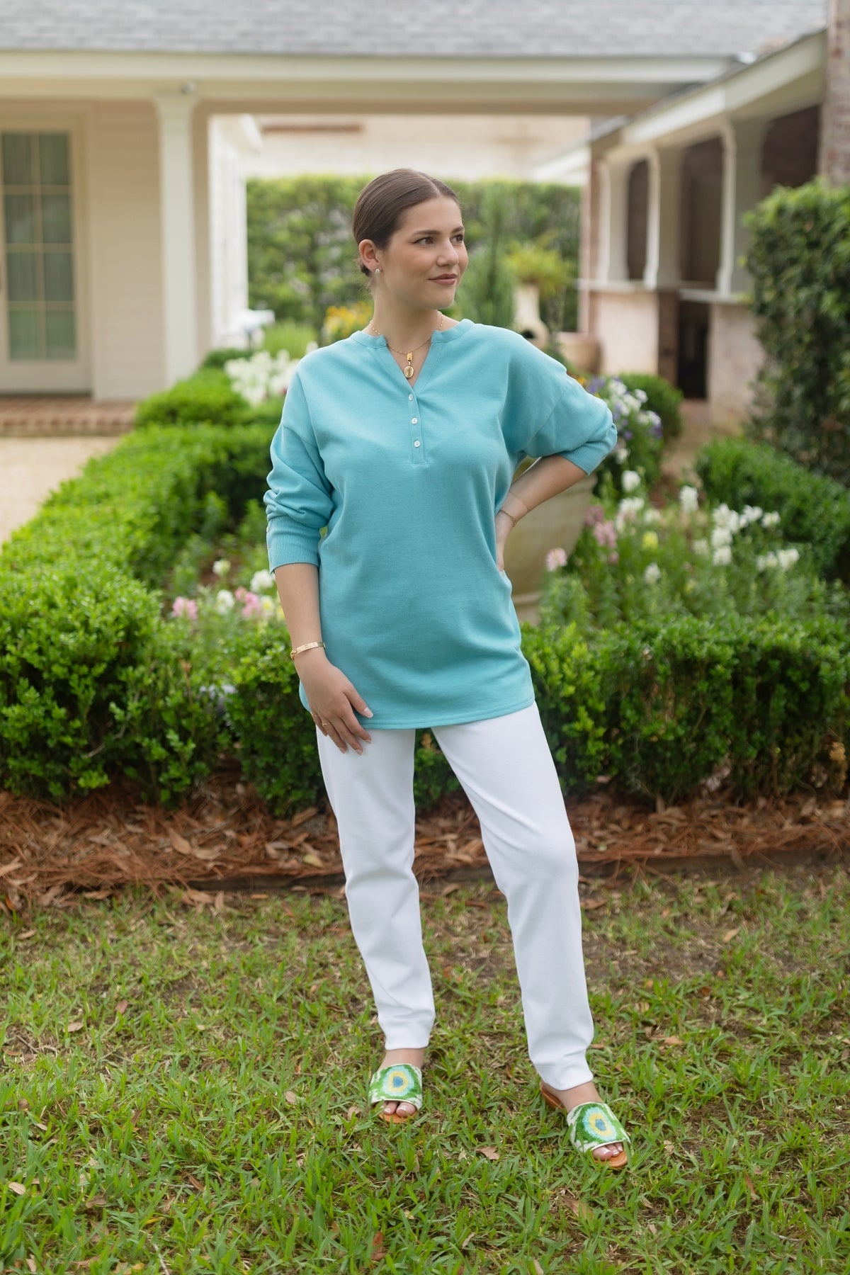 ¾ Sleeve Hi-Lo Shirttail Tunic