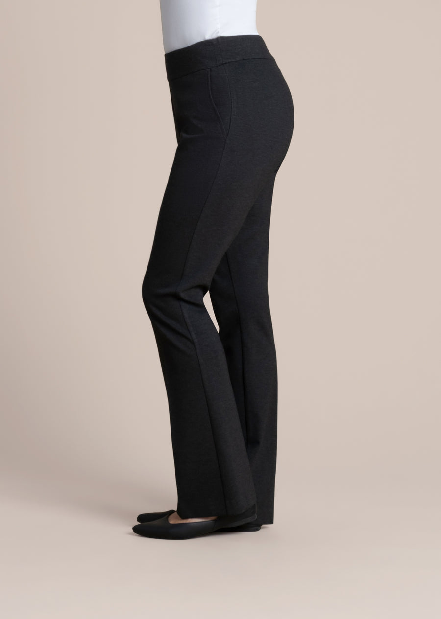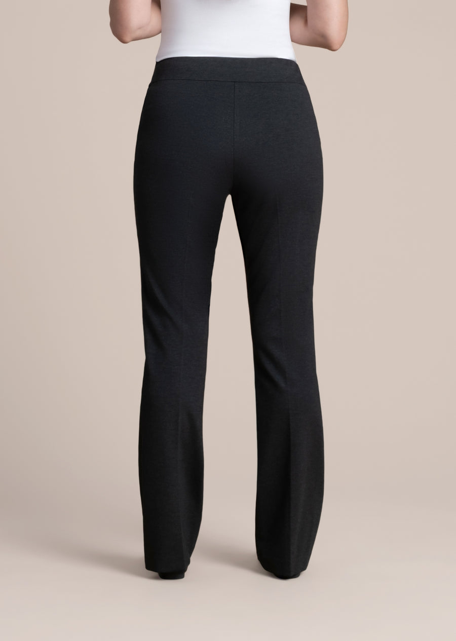 The Hollywood Fabric 31" Mini Flare Pant combines style and comfort with its winter-weight ponte knit fabric, perfect for cooler seasons. Featuring a 31" inseam, a 7” knee width, and a 9” leg opening, its tailored flare silhouette flatters while allowing ease of movement. Practical pockets add functionality, making this pant a versatile and polished addition to any wardrobe.