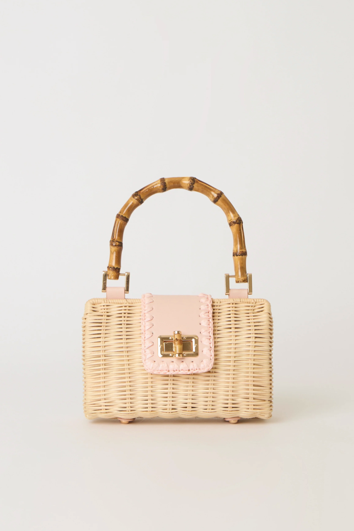 The Brandi Clutch is a polished take on classic wicker styling. Designed with a structured woven body, a signature bamboo handle, and refined trim details, it brings a fresh, feminine feel to any look. Lightweight and easy to carry, it is a natural choice for brunch plans, vacation outings, and warm-weather evenings.