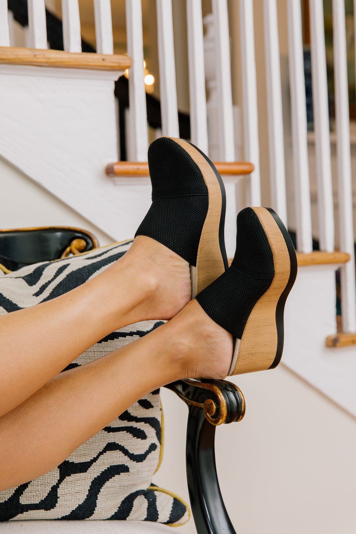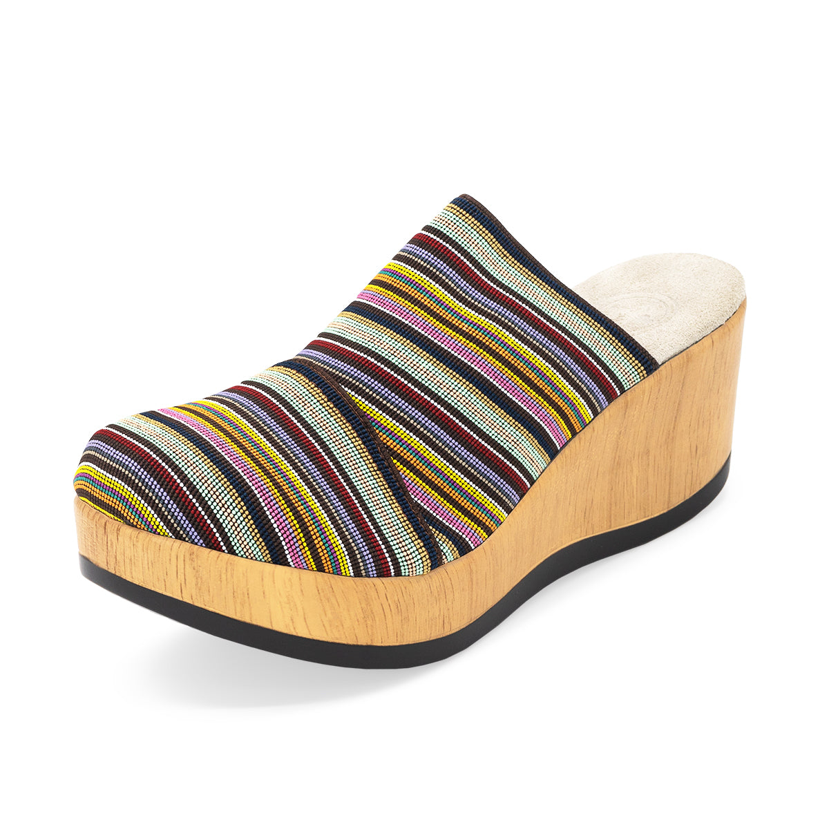 - Faux-wood platform heel